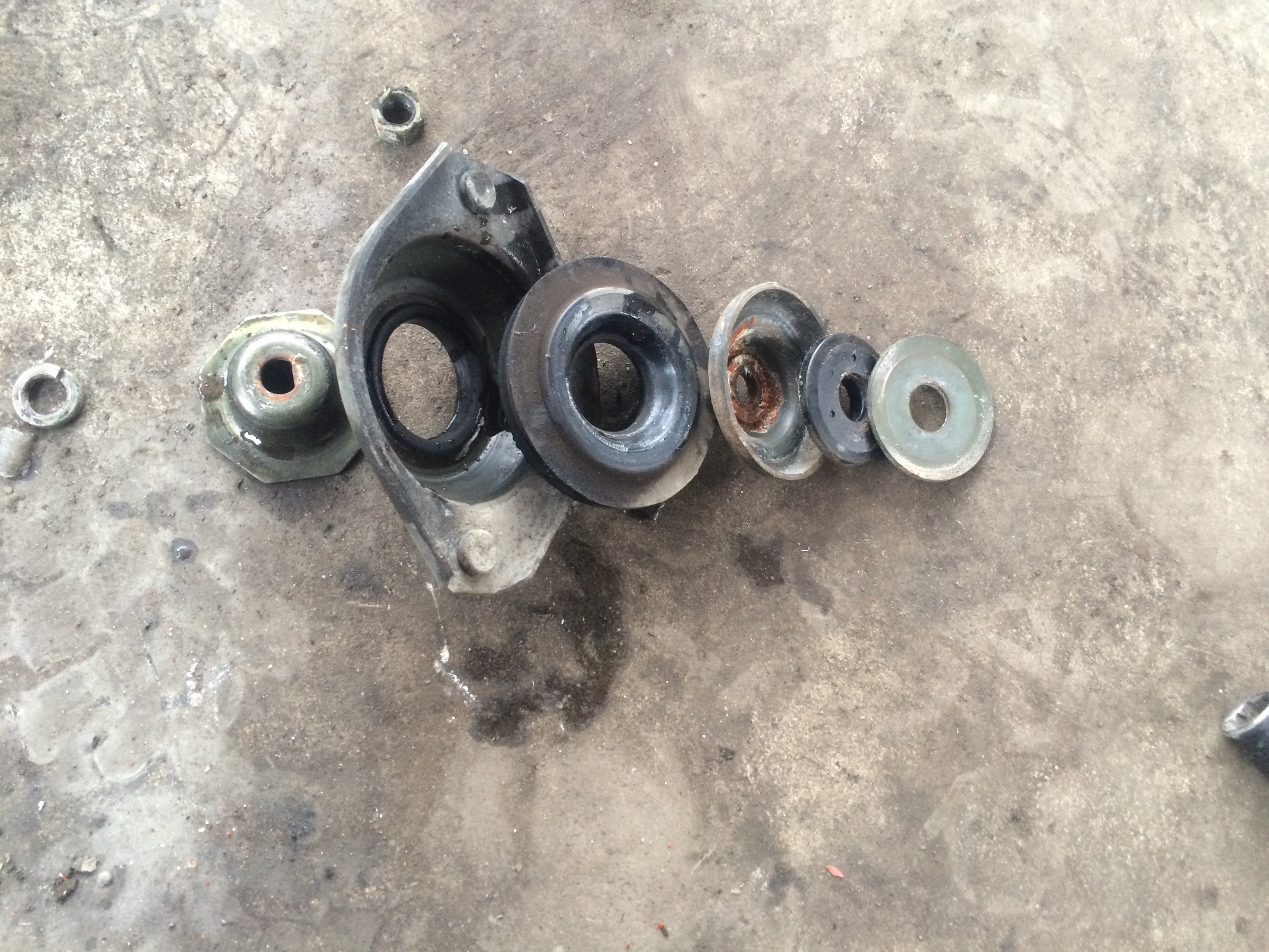 S様ご依頼のCV21SワゴンRの最終作業です。 足回りからの異音が出ていたのでストラットのアッパーマウントの消耗品を交換しました。 マウント上下のゴムブッシュとストラットベアリングが交換となりました。