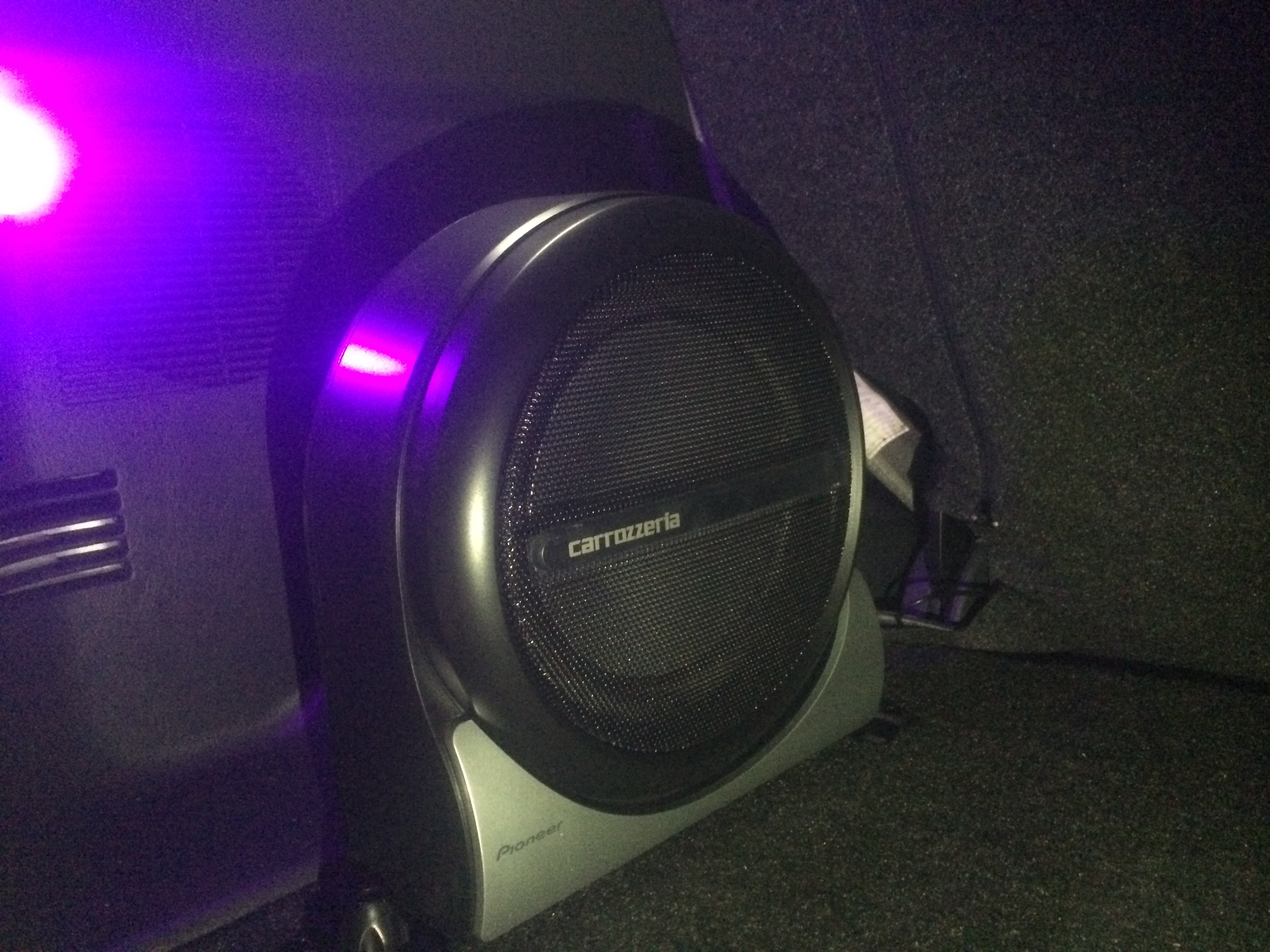 ウーファーの配線をしながら足元にLEDをを取り付けています。 夜のドライブが楽しくなりそうですね!