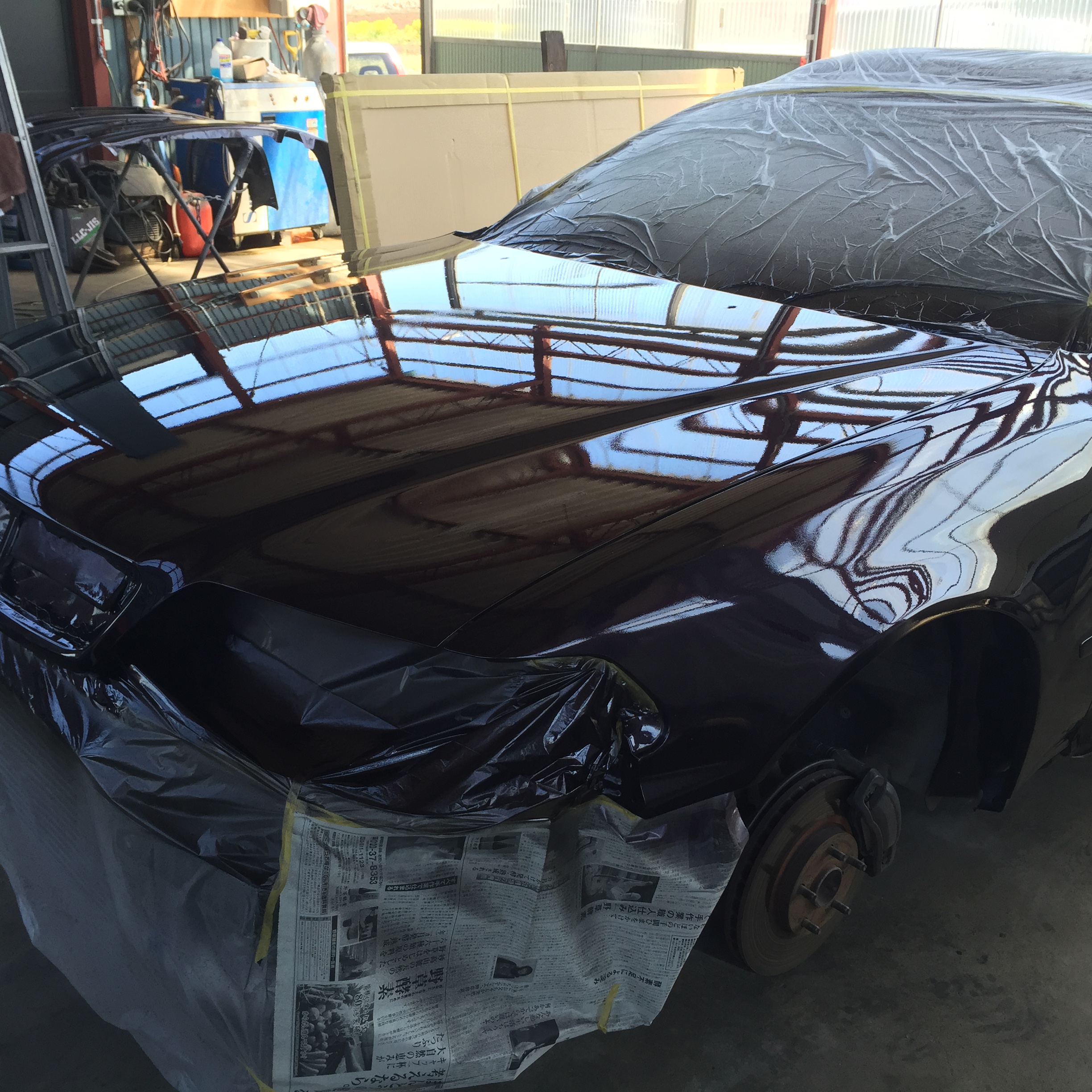 フェンダー、フロントバンパー、スポイラーの補修も終わりサフ吹き付けまで完了です。 明日より塗装準備へと入っていきます。