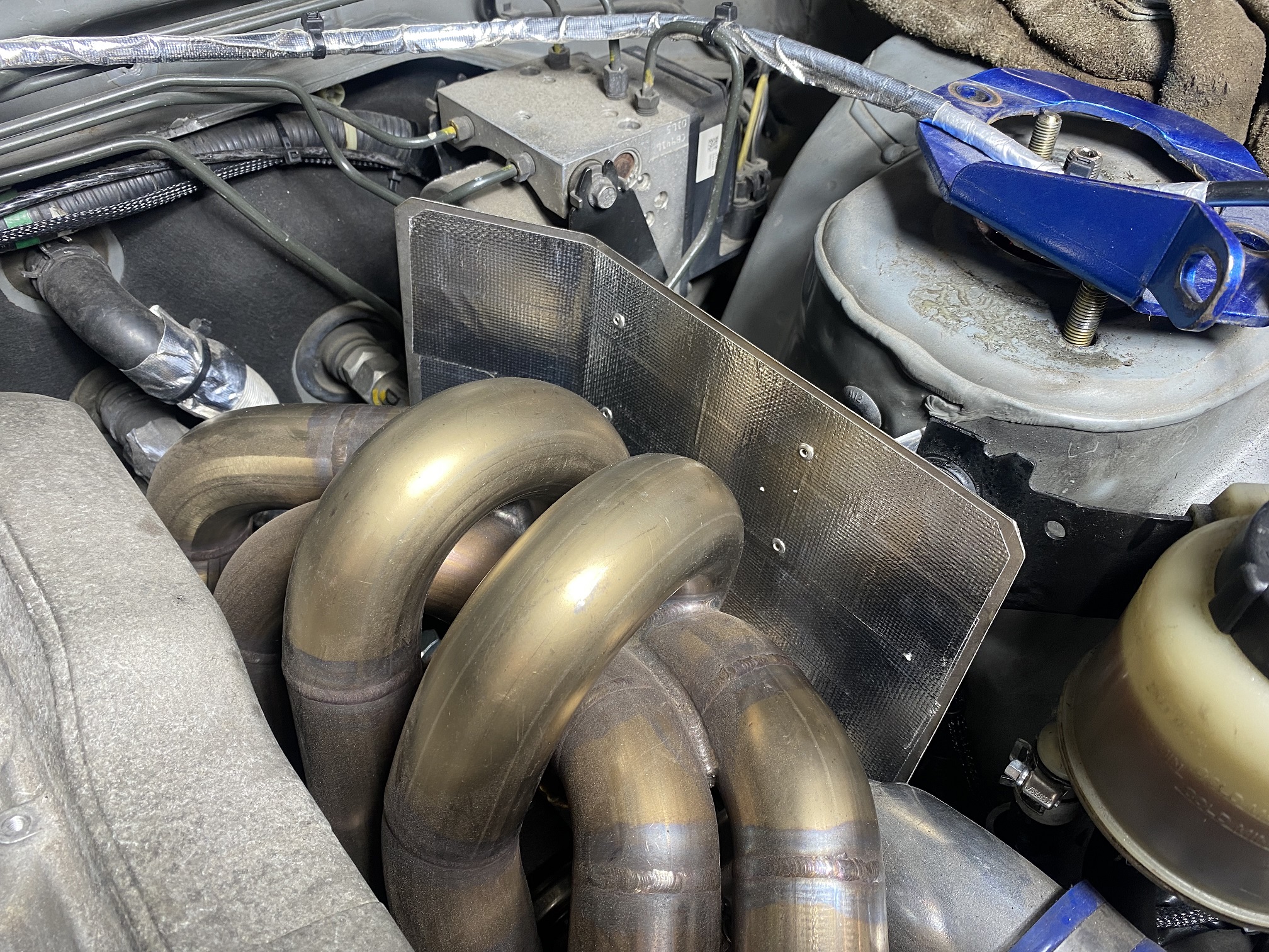 エンジンルームに戻り、エレメント移動キットを取り付け中・・・
