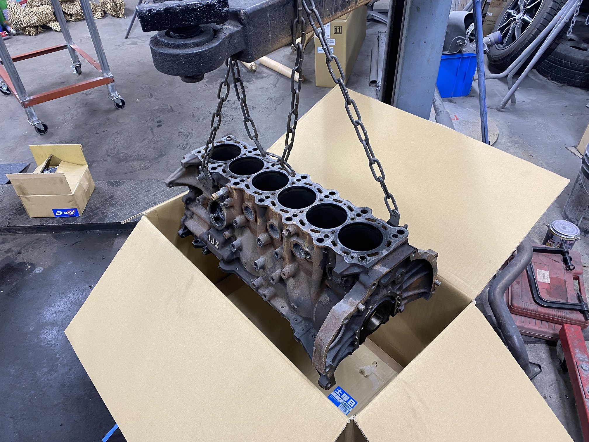 作業の順番の都合でちょっと時間開いてしまいましたが、シリンダーボーリングのため発送準備をしています。