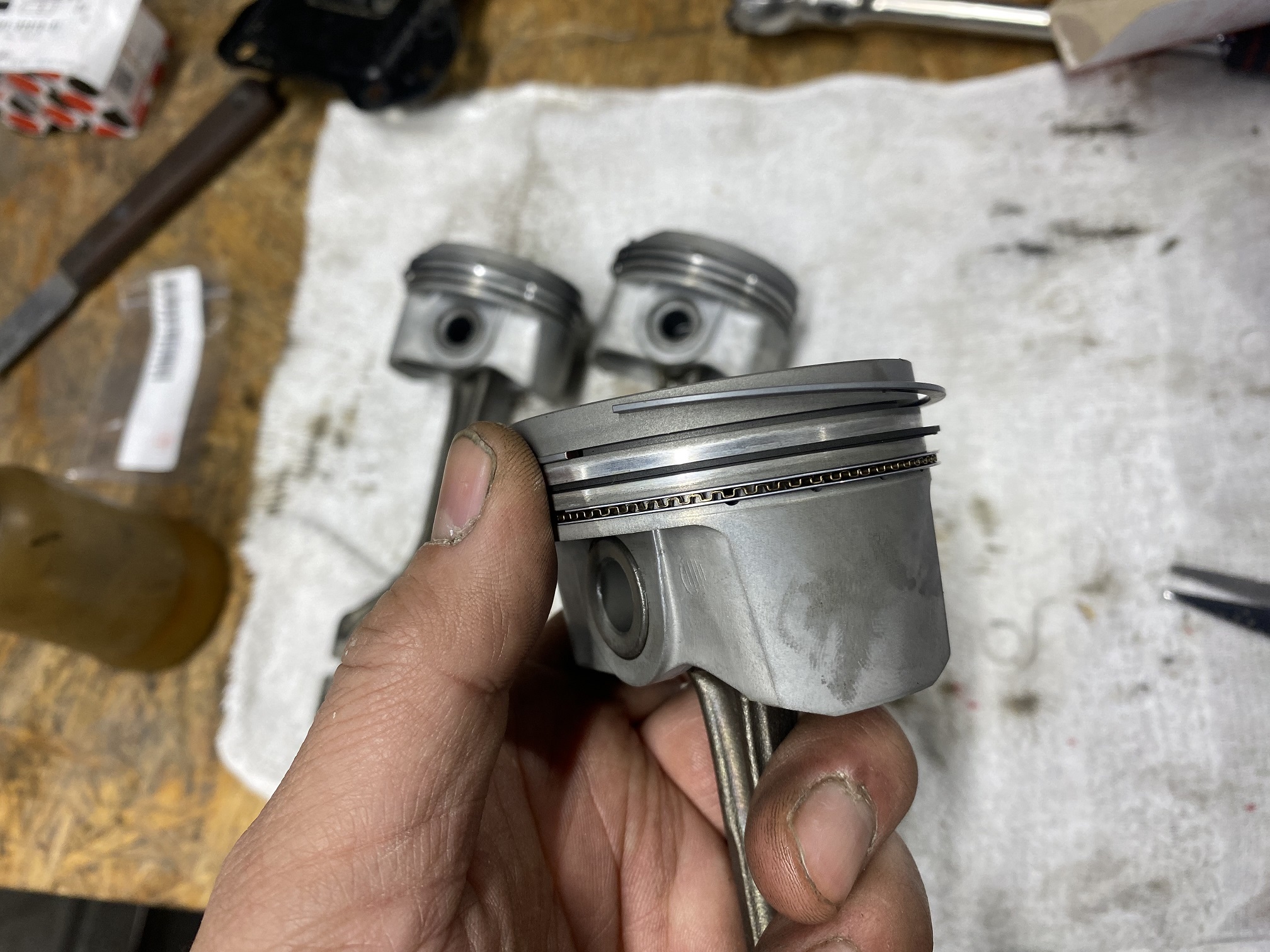 ピストンの交換を行っています。 新品ピストンへ交換です。