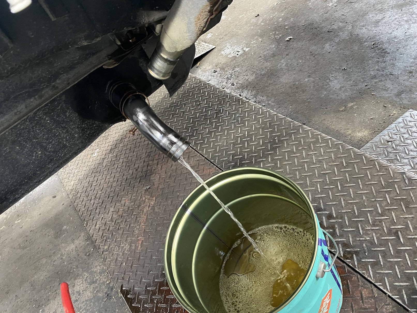 とりあえず、燃料タンクより軽油を抜いています。