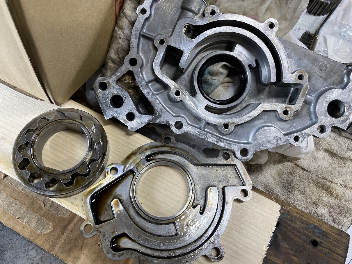 ナックルのオイル漏れ修理で分解中のナックル、シール類を全て交換し元通り組付けて完成。