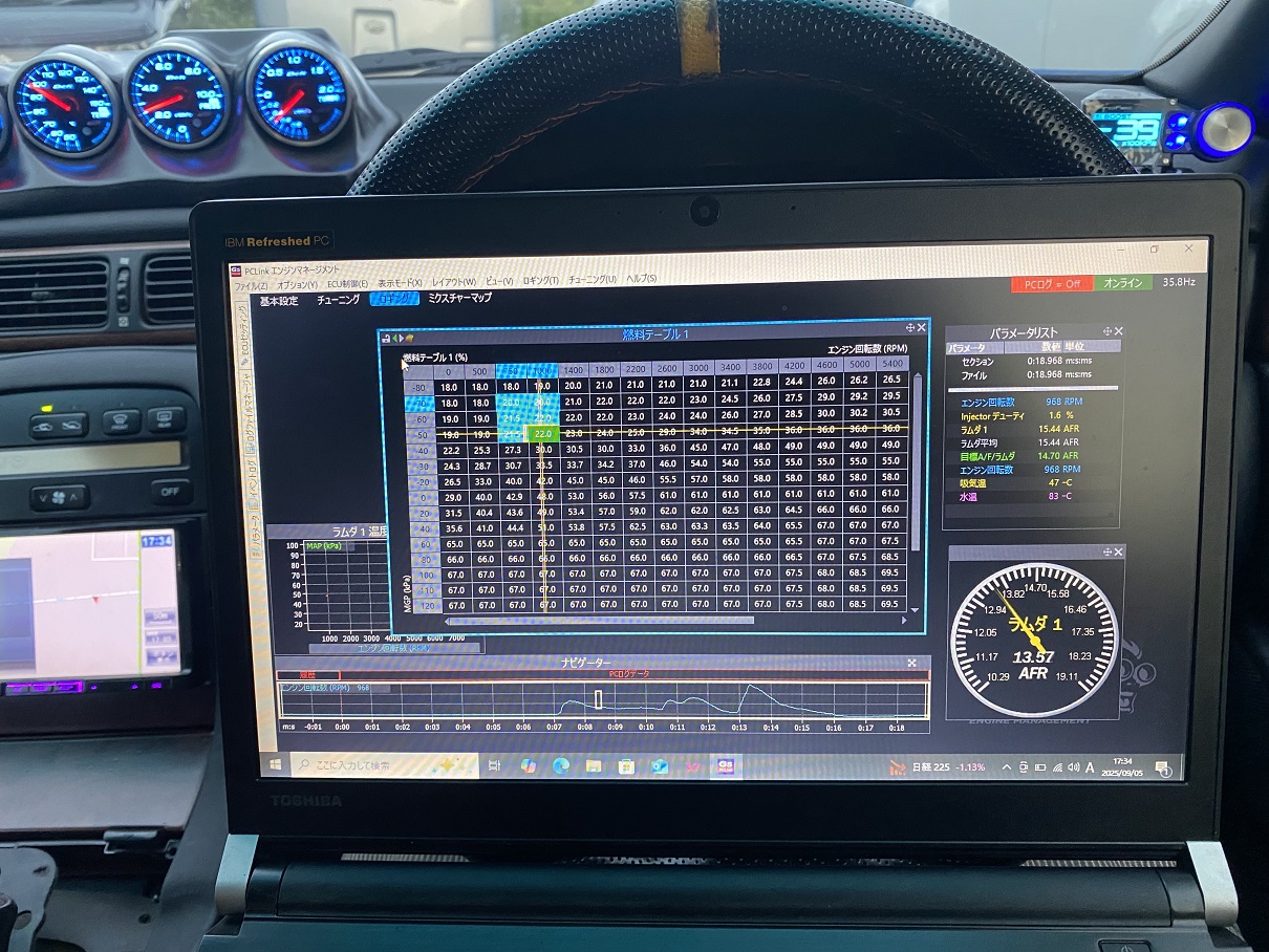 吸入空気量の数値が若干低いのでエアフロセンサーと断定、新品交換となりました。