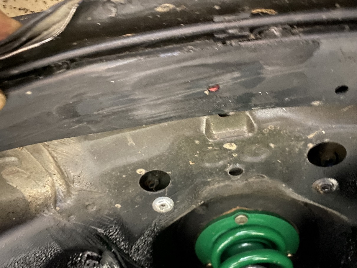つぶれたロッカーパネルを剥がし、新品の仮合わせ中。