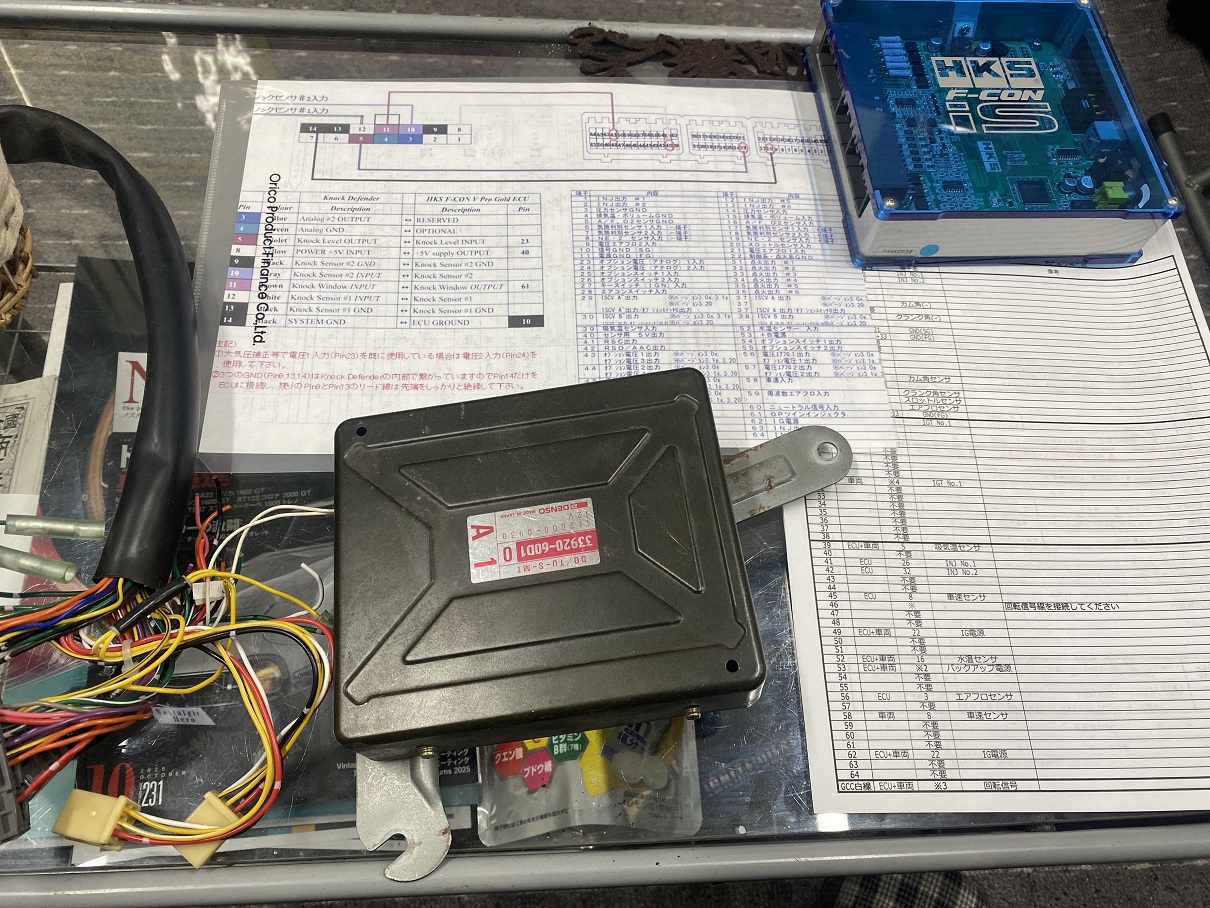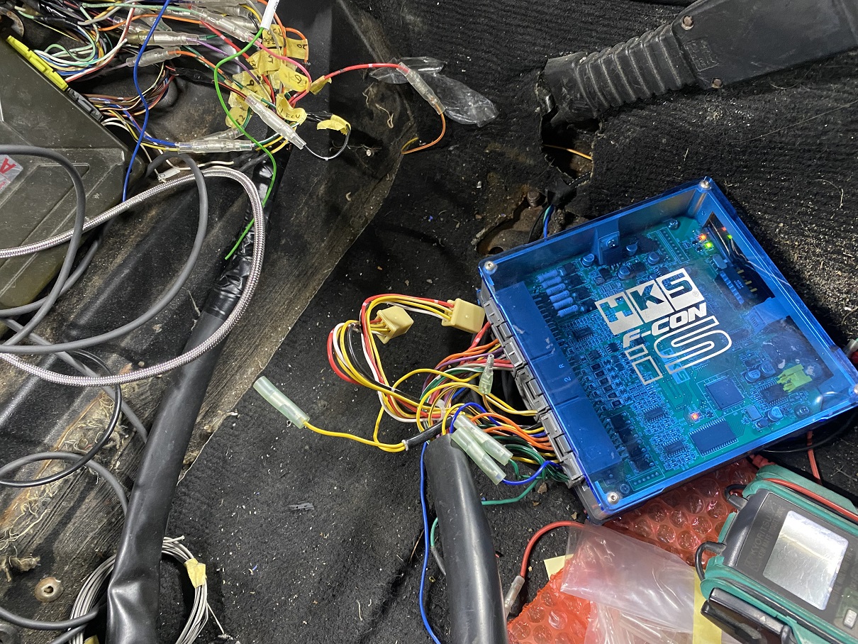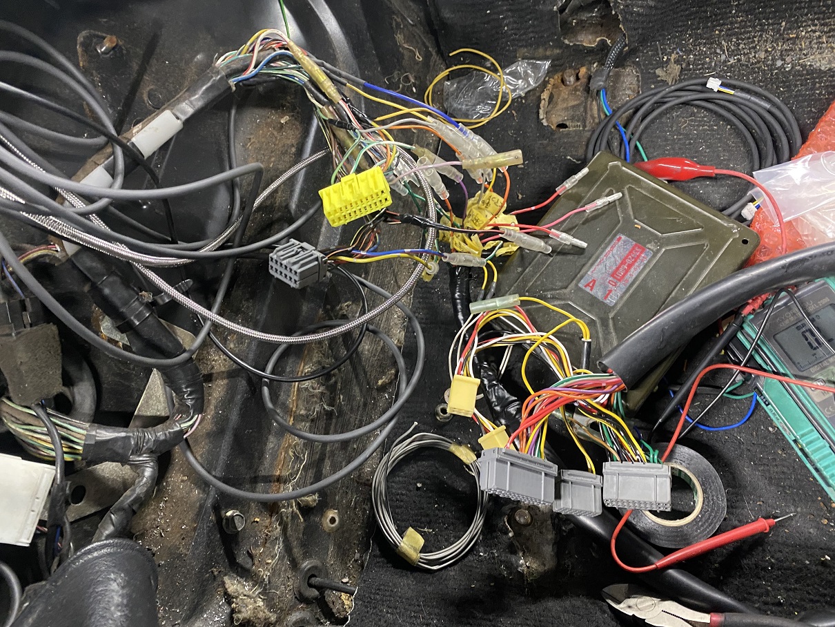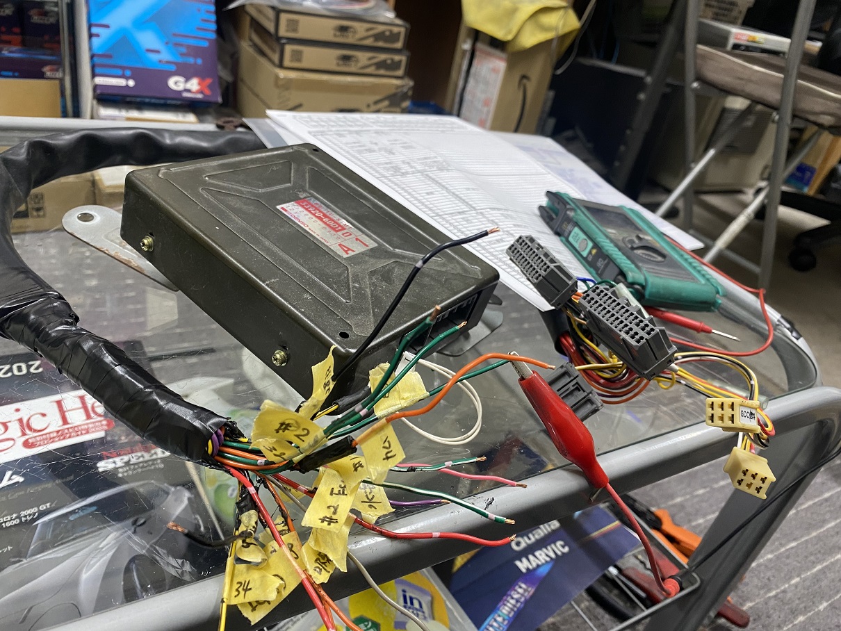 エンジン搭載し、車両側はほぼ完成したのでECUの配線加工を開始しています。