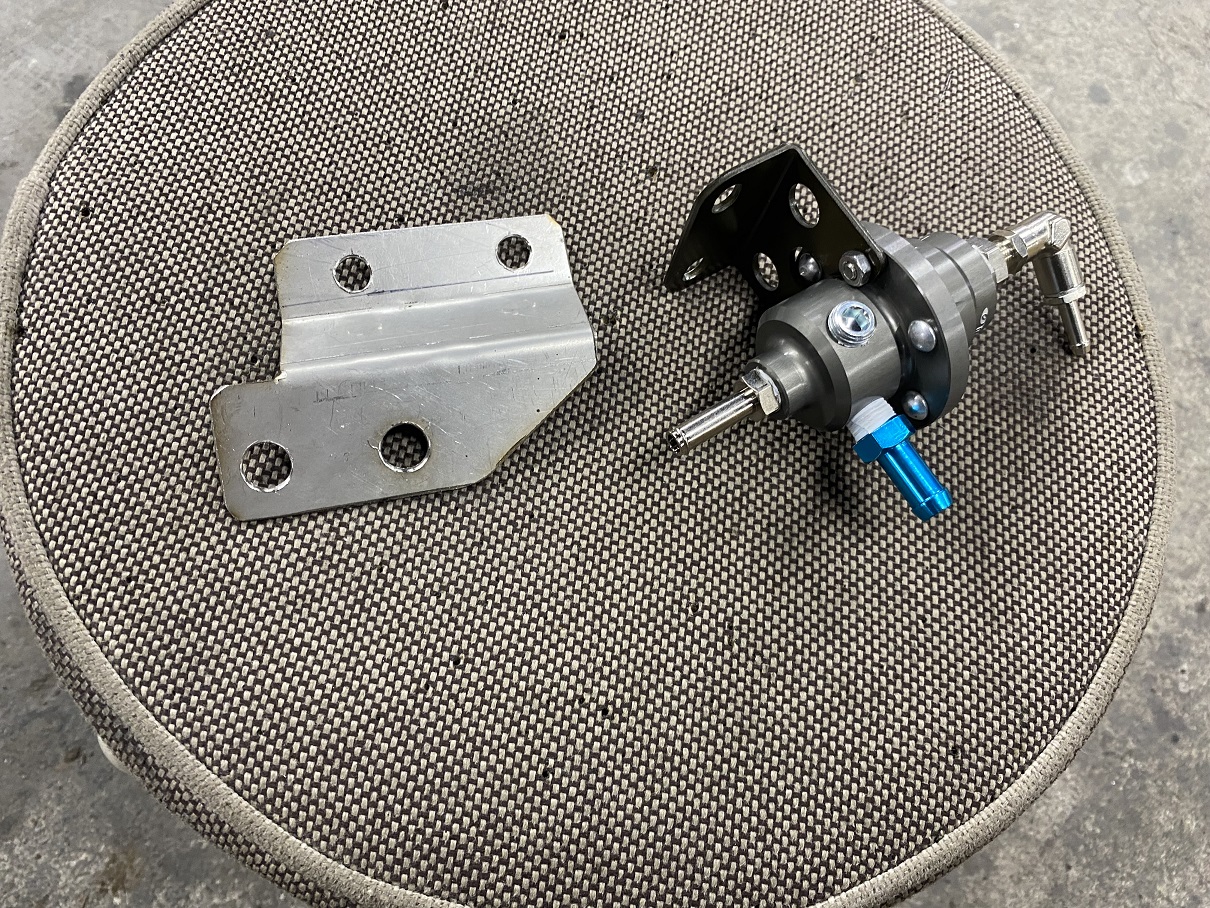 フューエルレギュレーターの取付け位置を決めブラケットを製作し、固定。