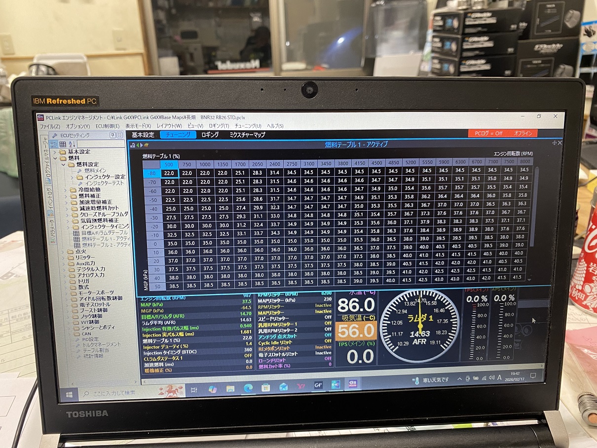 エンジンO/H後の慣らし運転用データを机上で作成、チェックしています。
