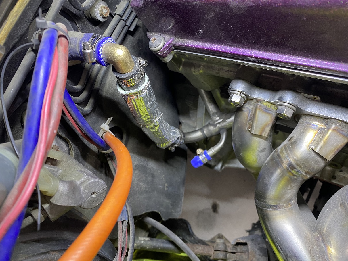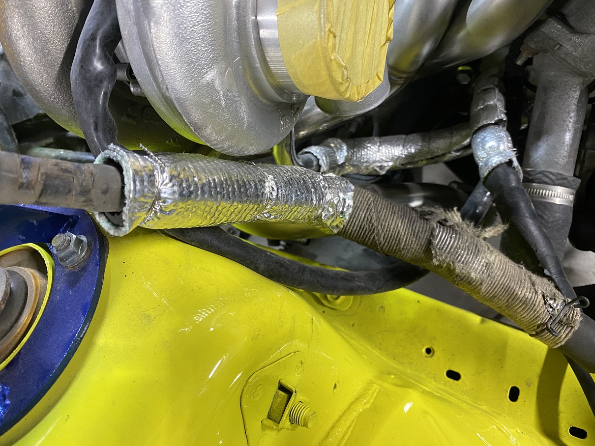 配線、配管には念には念を入れて耐熱布を巻き付けたりと対策。