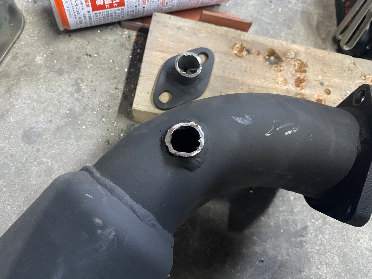 タービンキットに付属のフロントパイプ、純正のO2センサーを取り付けるフランジが設けてありますが思い切って