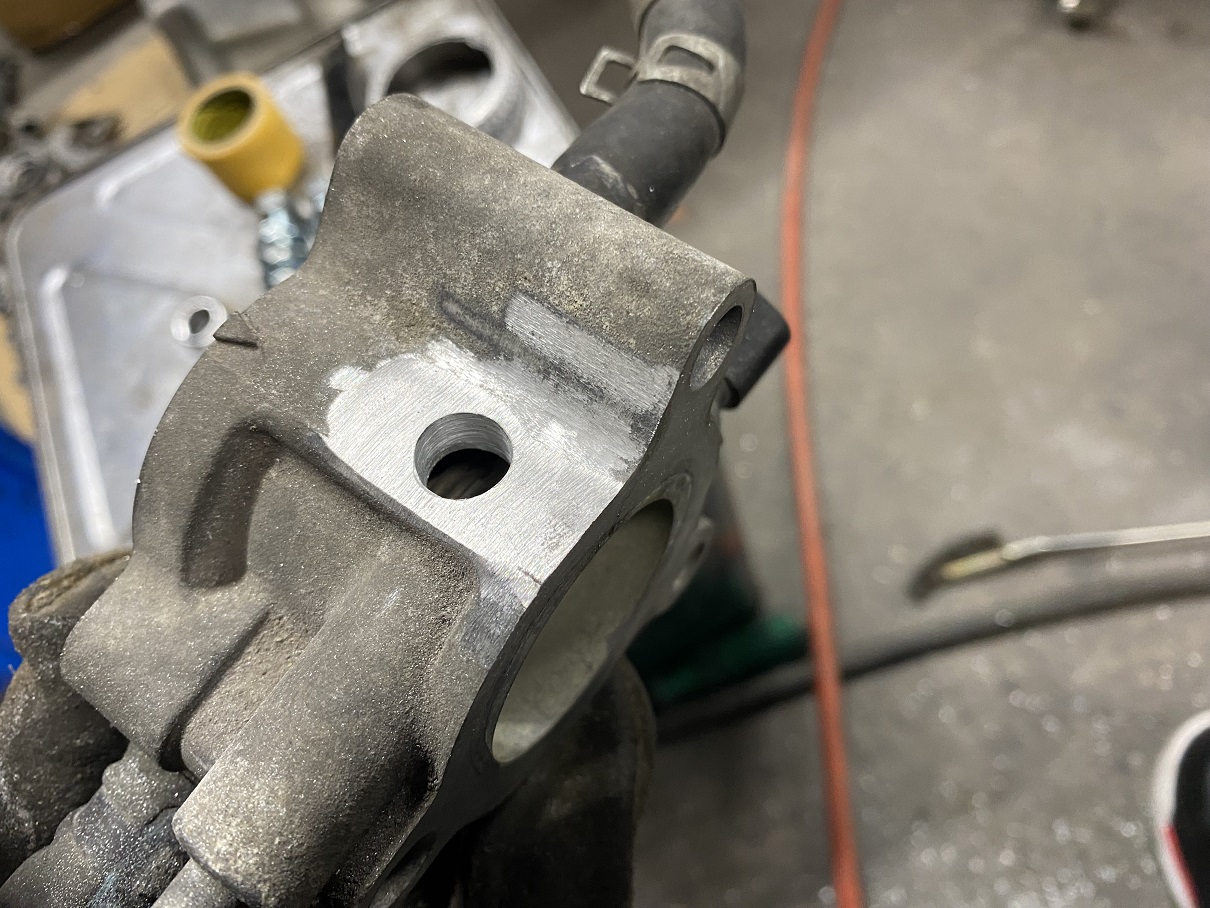 サージタンクにセンサーを取り付けようとしたら…電スロに干渉して付かない(泣
