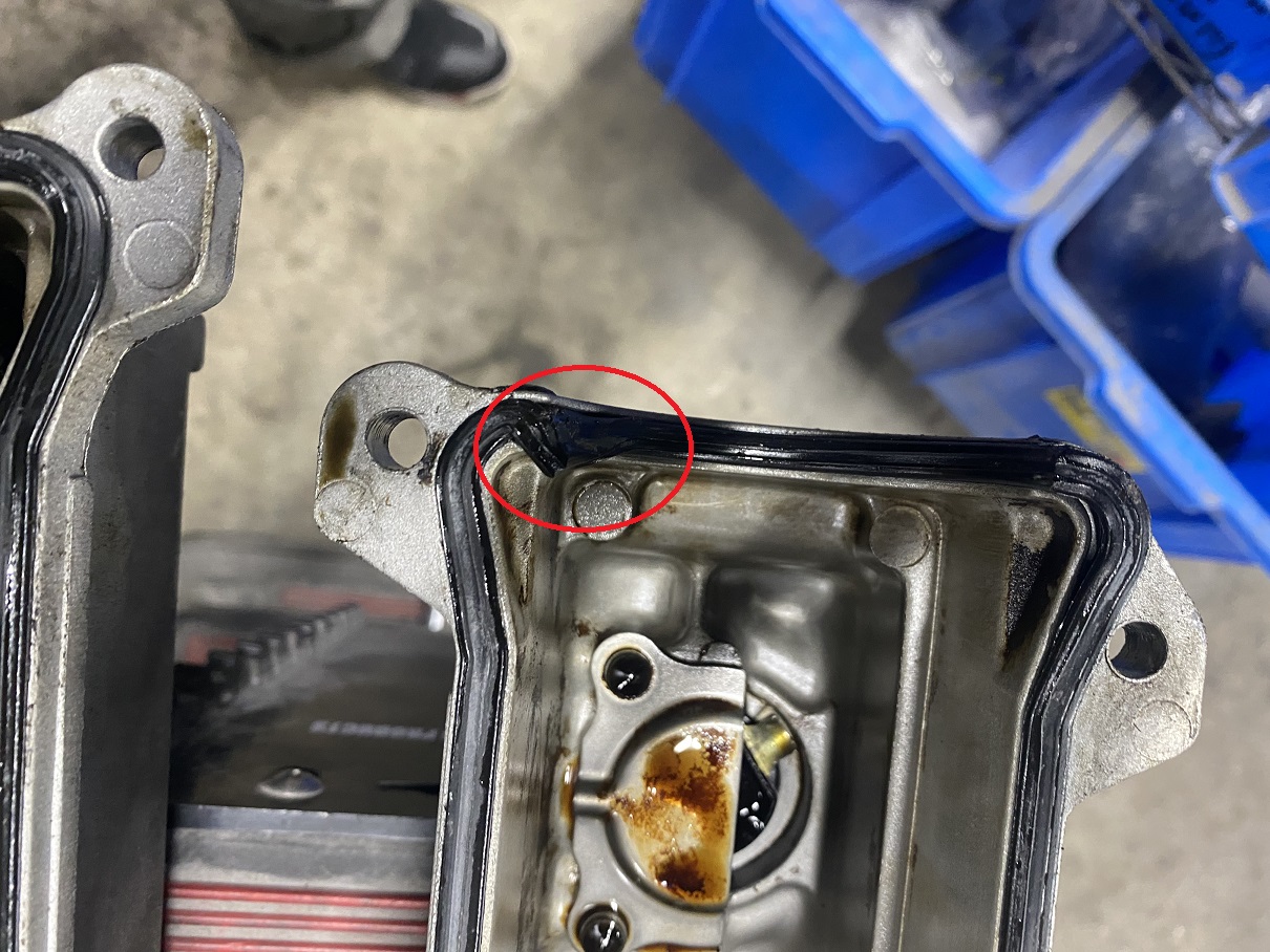 前回カムカバーガスケットを交換した際の整備ミスでした。