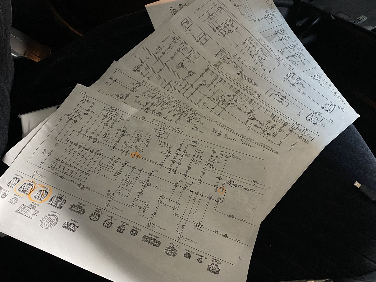必要な箇所の配線図をプリントアウトし、間違えないよう確認しながら配線加工。