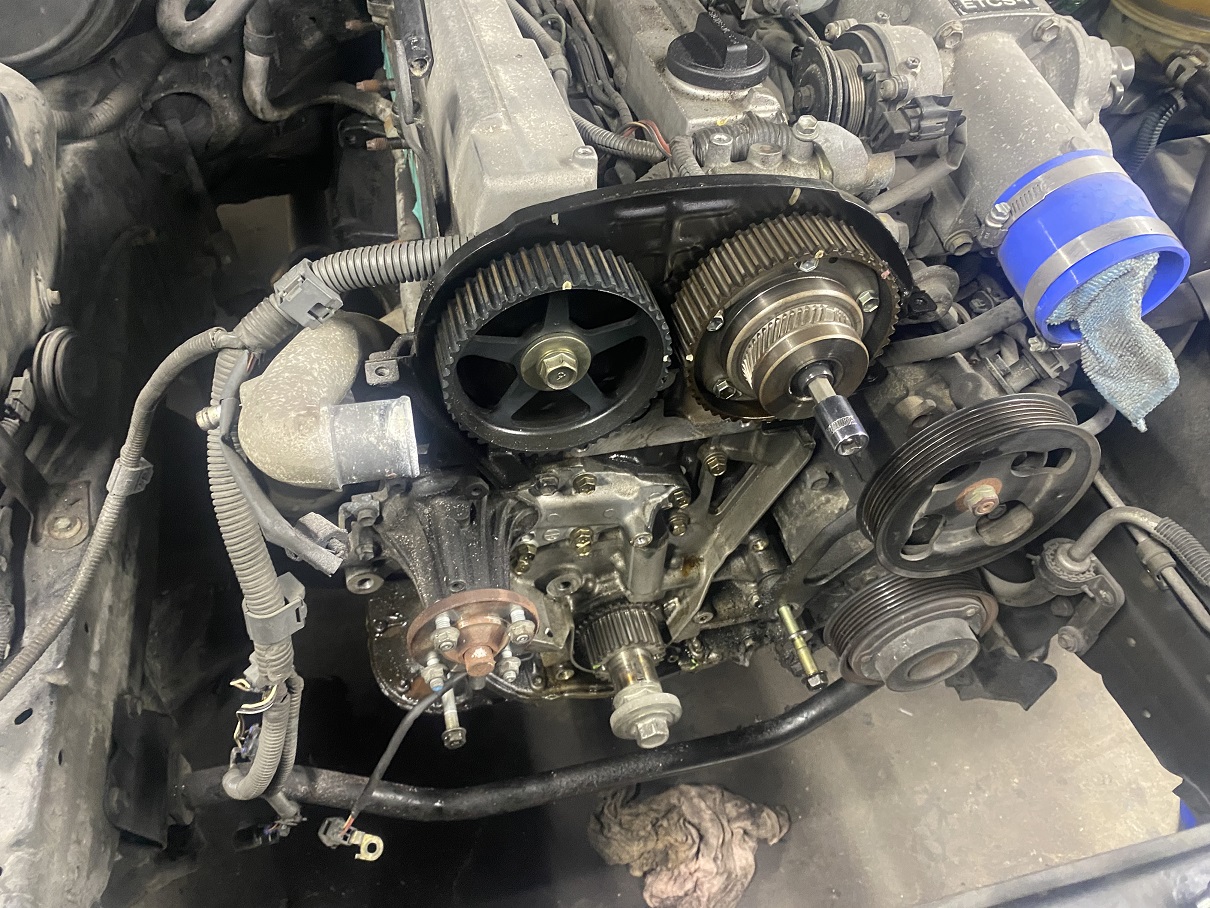 タービン交換と同時にタイベル&ウォーターポンプ交換と、オイル漏れ修理も同時進行です。