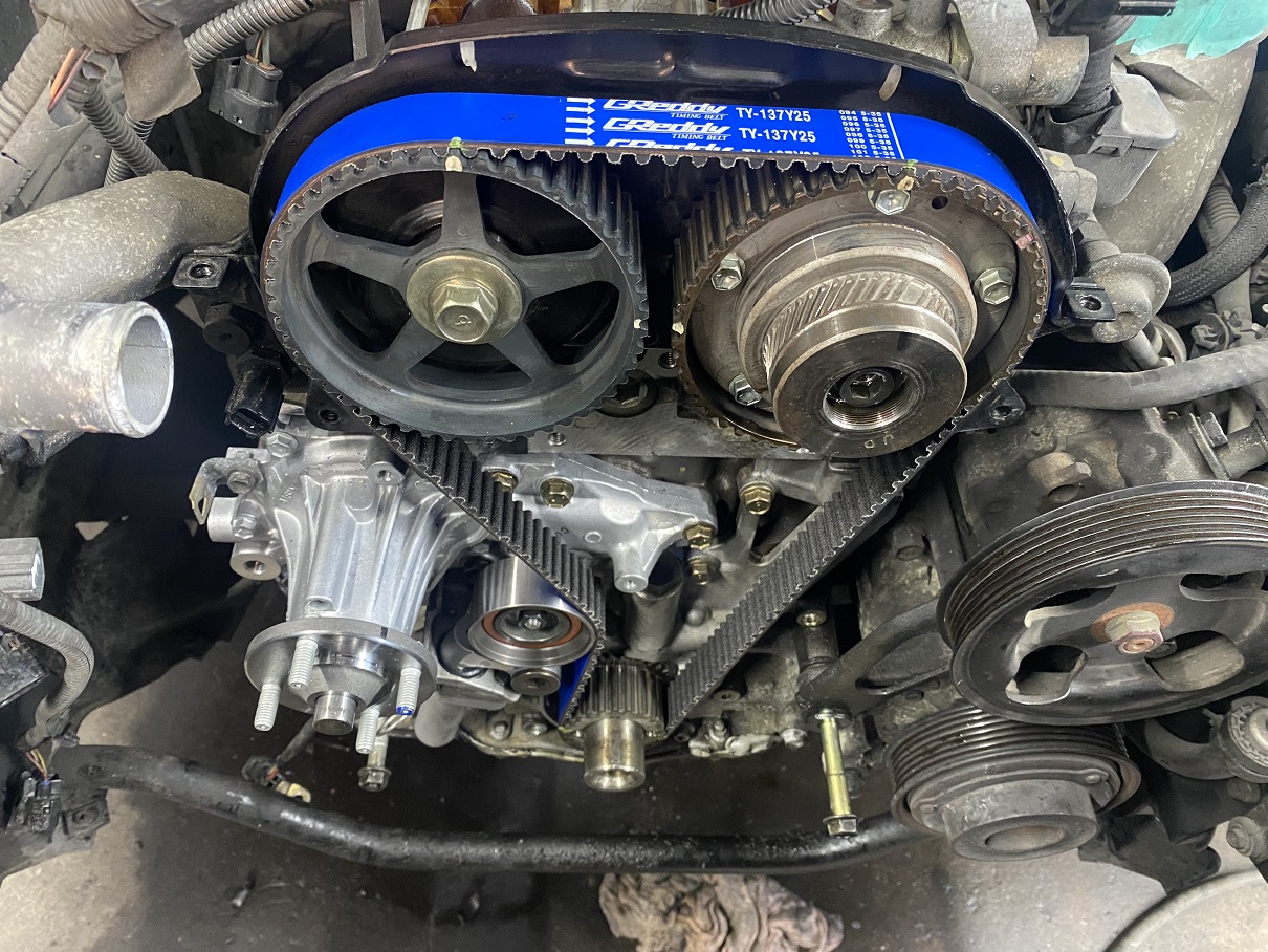 カム&クランクスプロケット等を取付け、タイミングベルトを張ります。