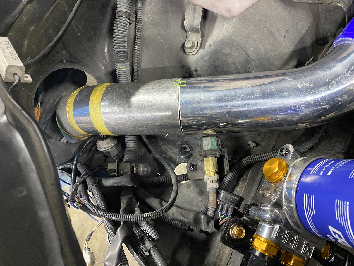 タービン~インタークーラーへのパイピングもこの通り、全く合わない位置にあります(汗
